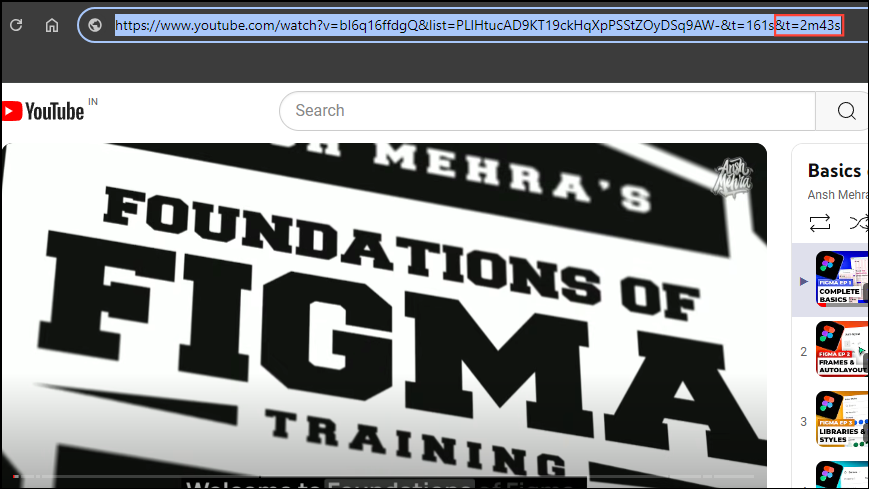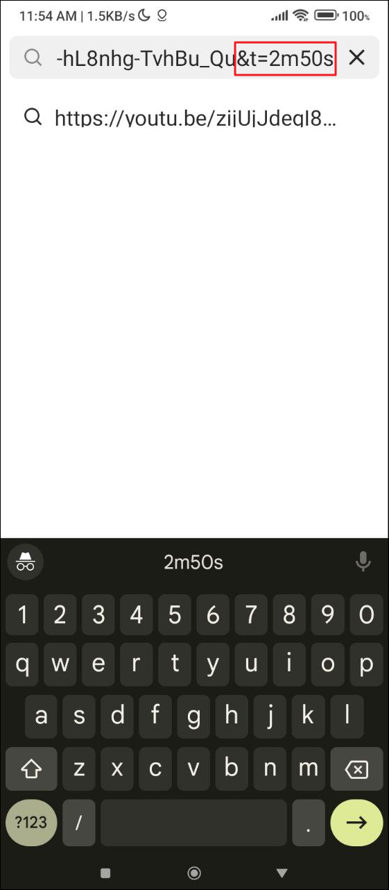 &t=followed by the time at which you want the video to start. For example, add&t=2m50sto add a timestamp at 2 minutes and 50 seconds. - When you share this modified link, it will open the YouTube video from the timestamp.