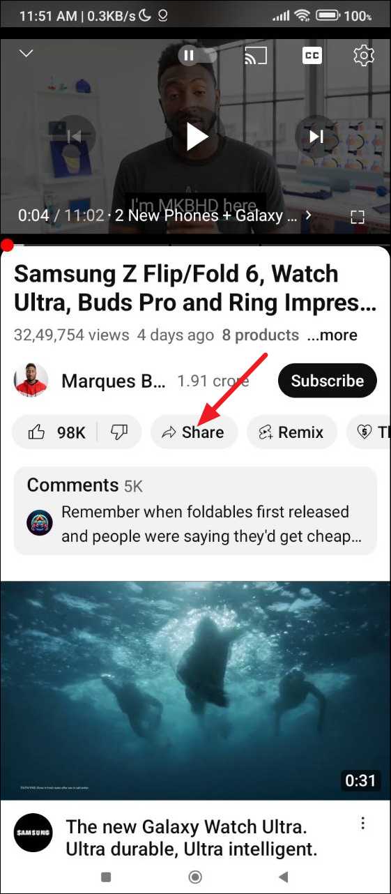 - Open the YouTube app and go to the video for which you want to create a timestamp.