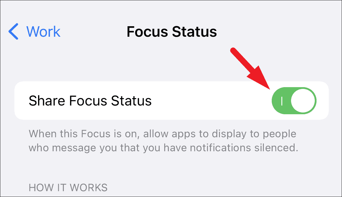 Finally, tap on the toggle following the ‘Share Focus Status’ option to bring to the ‘On’ position.