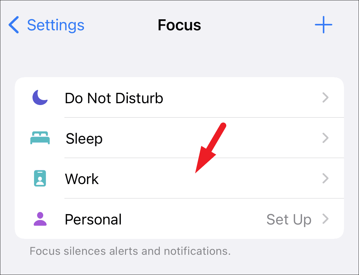 Now, tap on the Focus Mode you wish to turn on the sharing of Focus Status from the list.