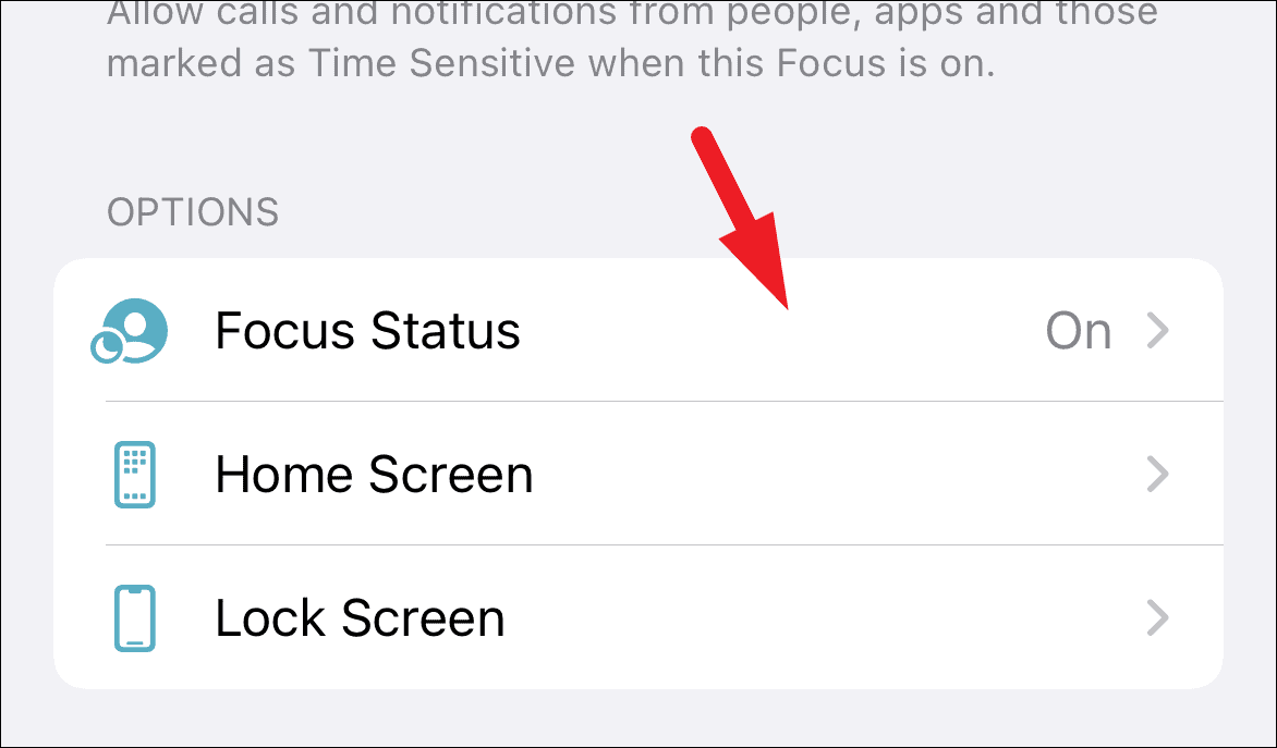After that, locate the ‘options’ section and tap on the ‘Focus status’ option to continue.