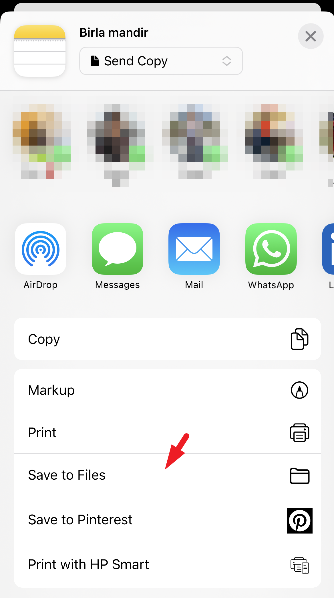 After that, scroll down and tap on the ‘Save to files’ option to continue.