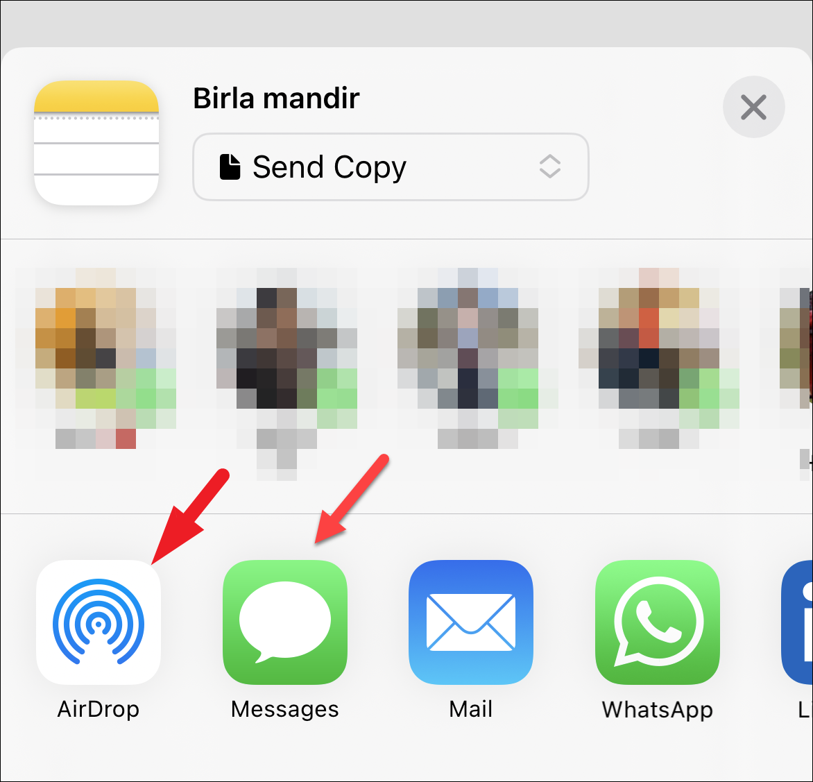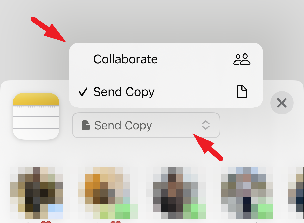 Make sure that it says ‘Send Copy’ on the share sheet before sharing the note. If the person you wish to share the note with is nearby and is an Apple device user, tap on the ‘AirDrop’ icon and select the person you want to share it with. The other person will receive an alert on their iPhone, and they will need to hit ‘Accept’ to receive the file. Or if the person is not nearby, send it as an iMessage using the Messages app.