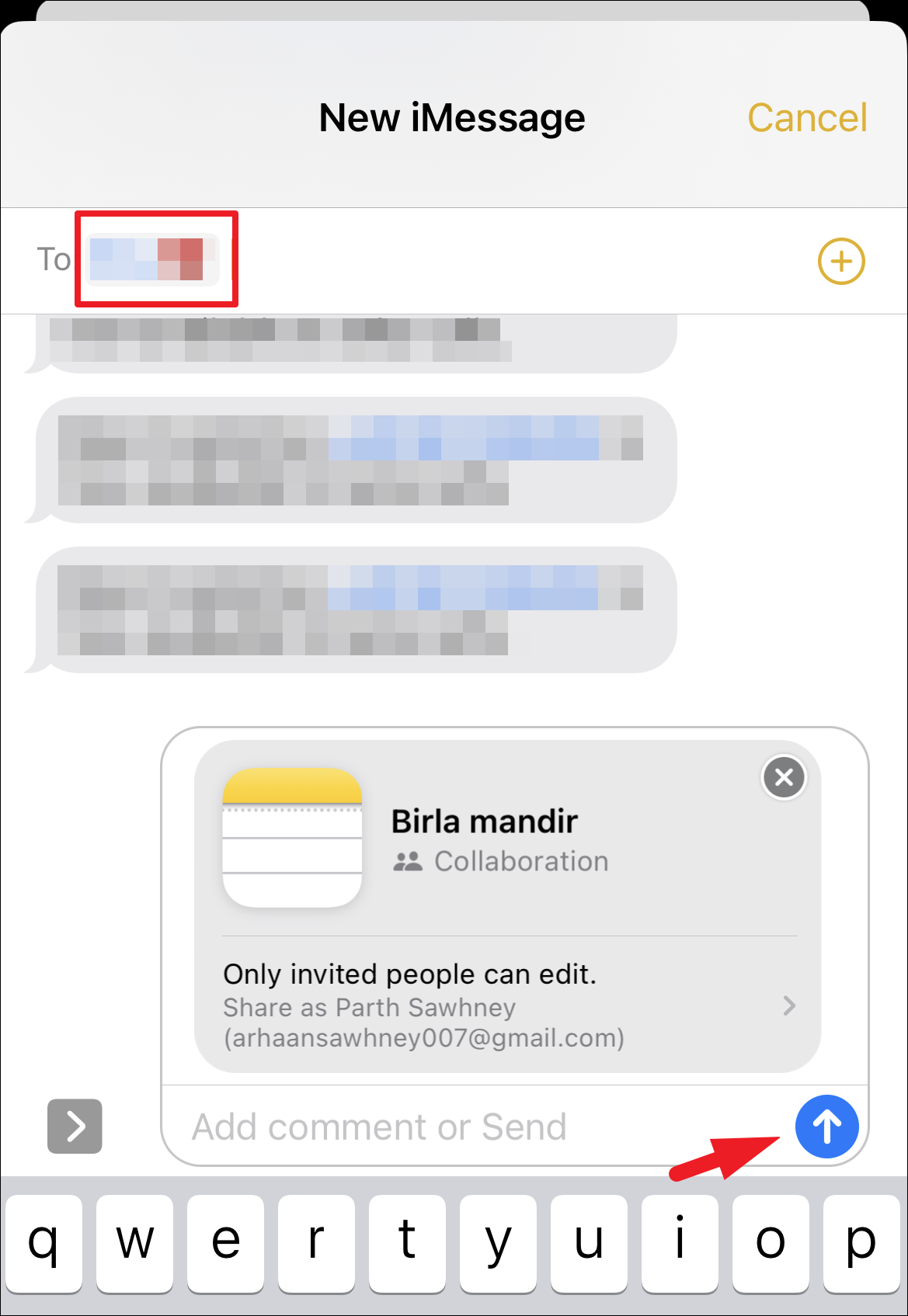Now, type the contact number or address in the ‘To’ field and then tap on the ‘Send’ button.