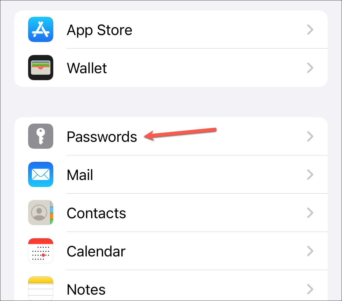 Then, scroll down and go to the 'Passwords' option.