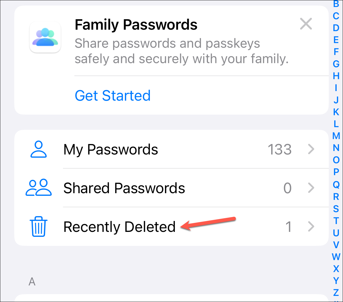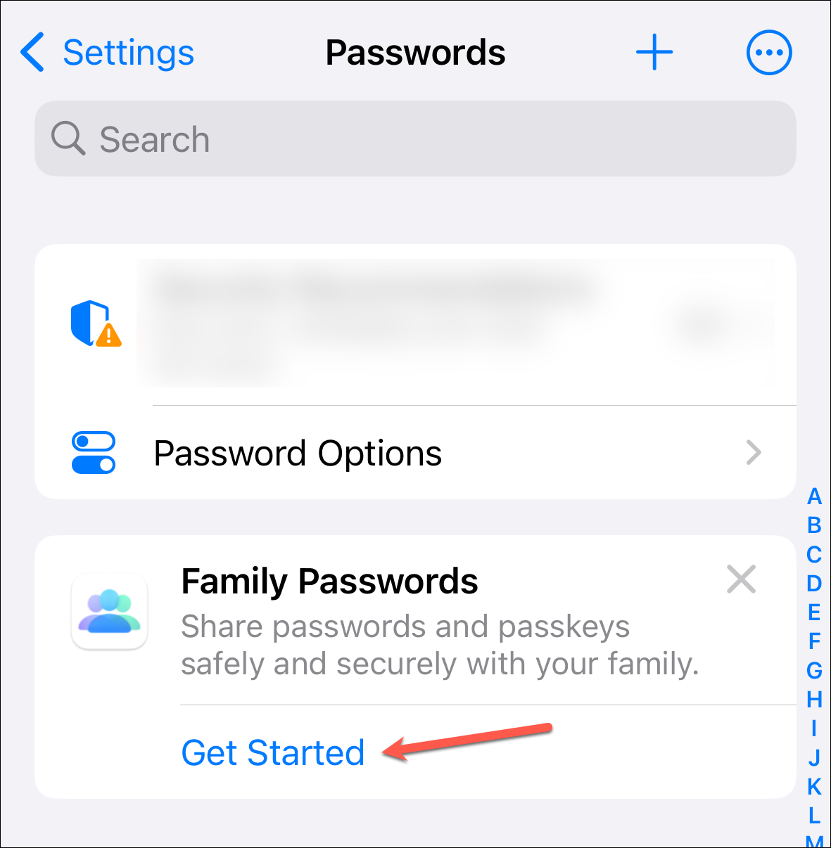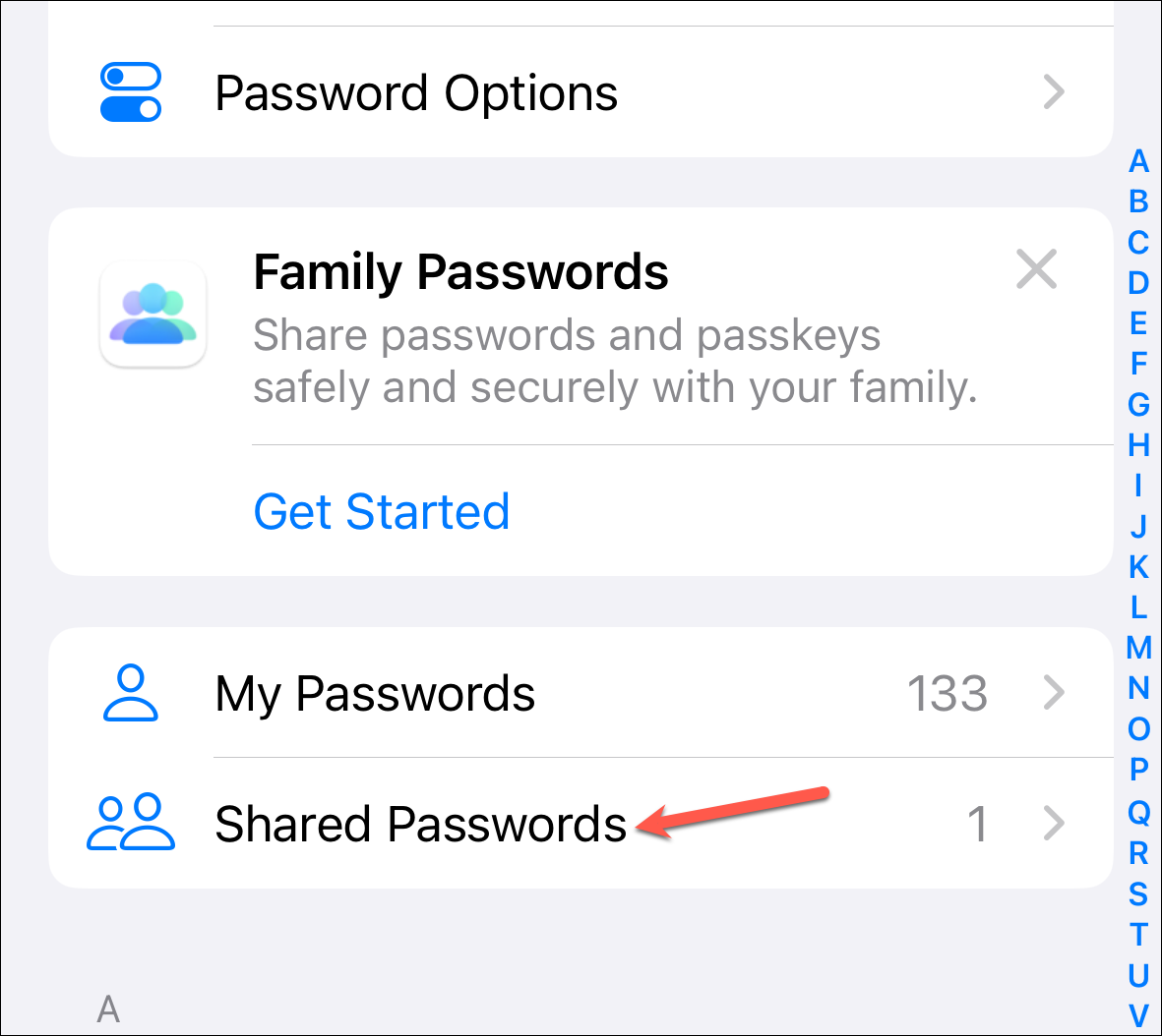 Then, tap 'Get Started' on the Family Passwords banner.