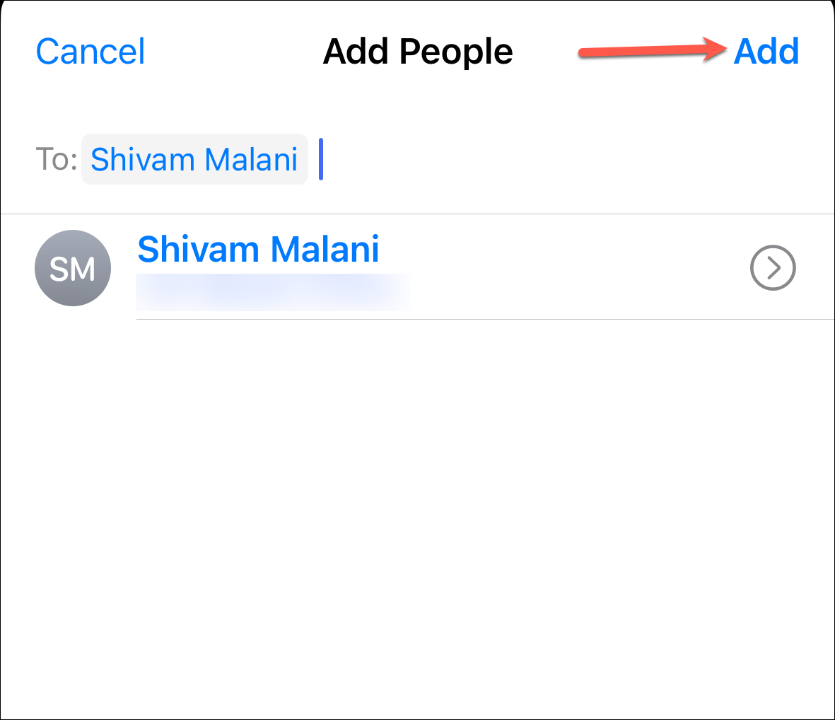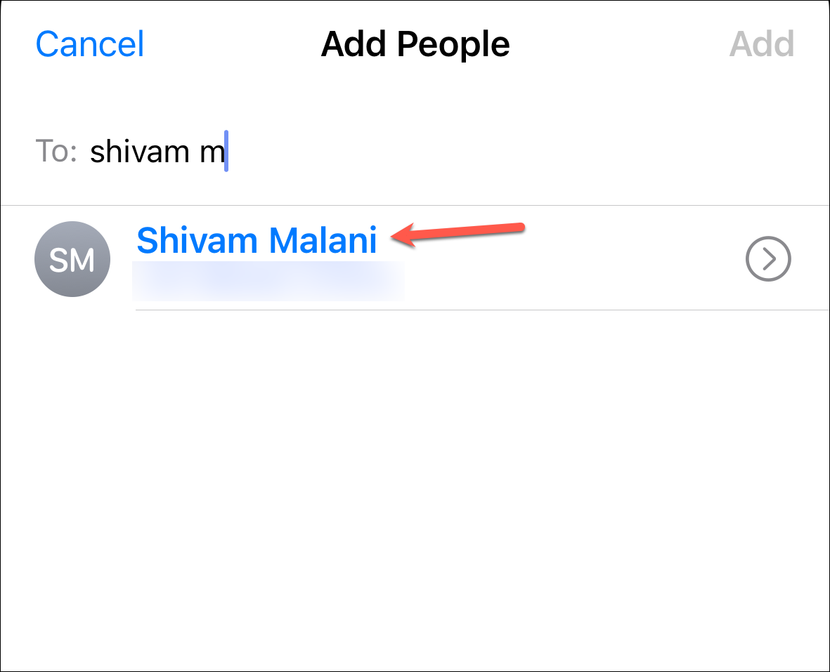 Then, enter the contact names and tap 'Add' to add them.