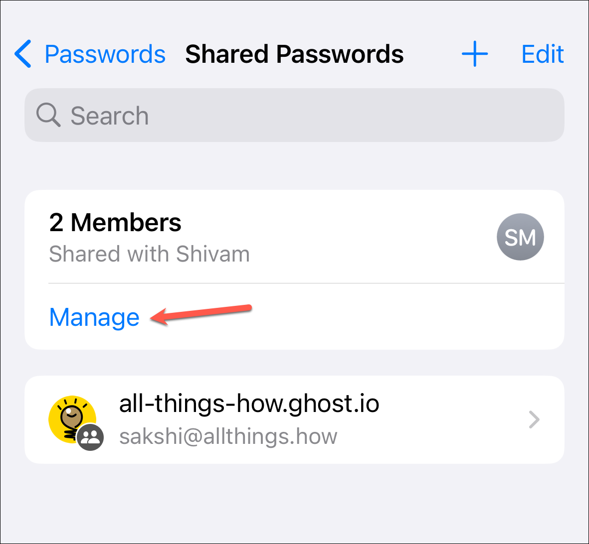 Manage your Shared Passwords Group