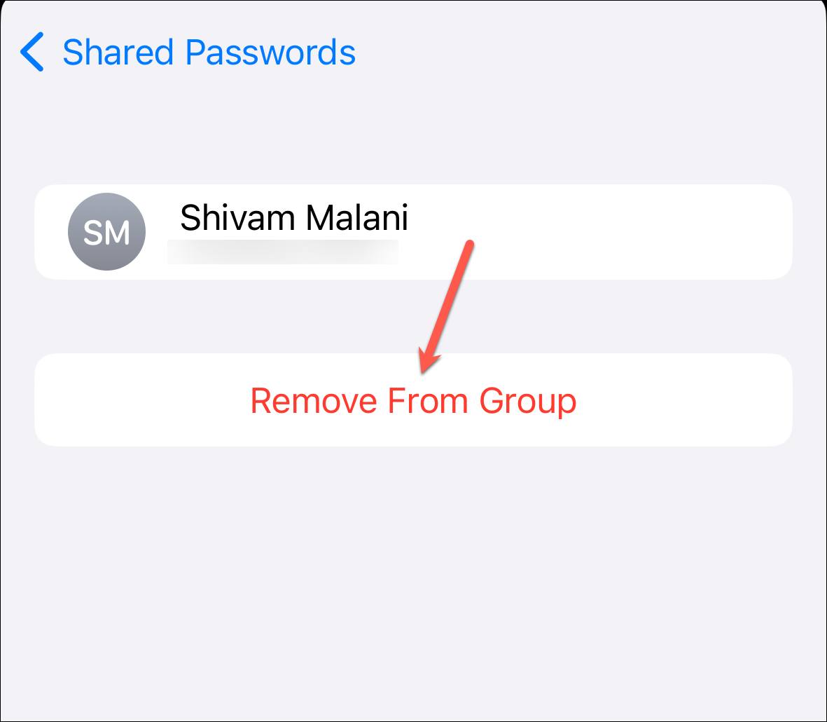 Then, tap 'Remove from Group'.