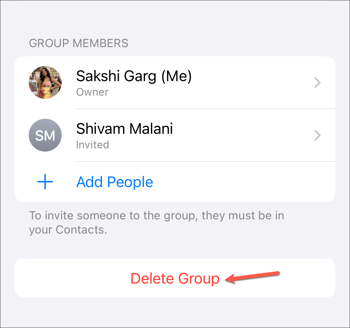 Here, you can edit the group name, add or remove people, or delete the entire group.
