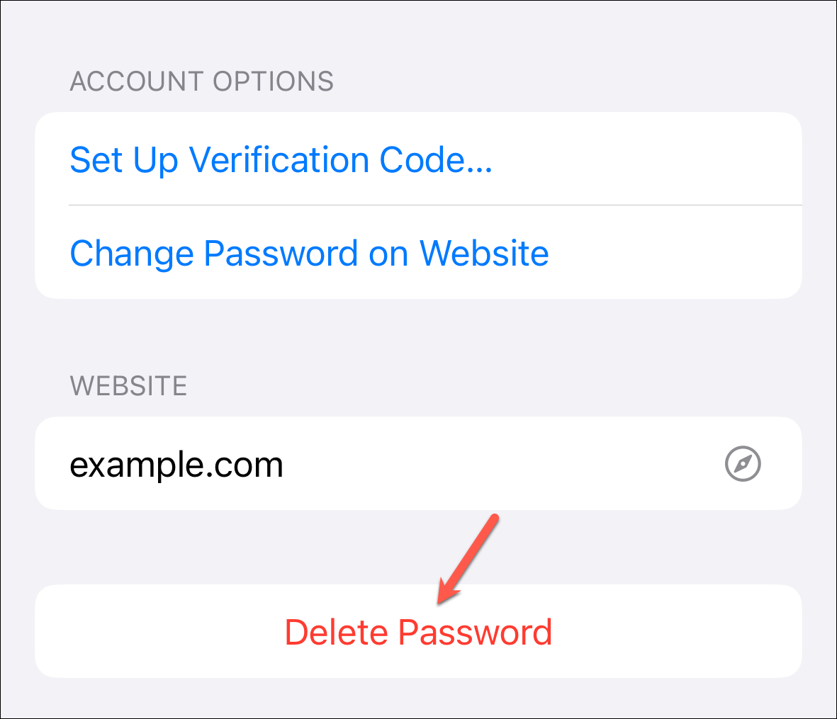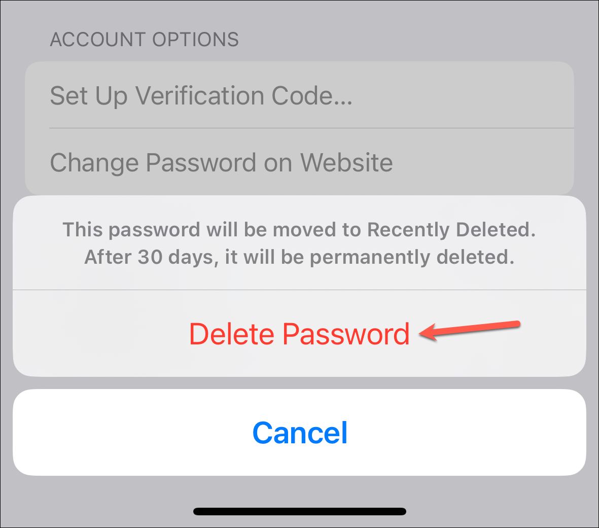 Tap 'Delete Password' on the confirmation prompt.