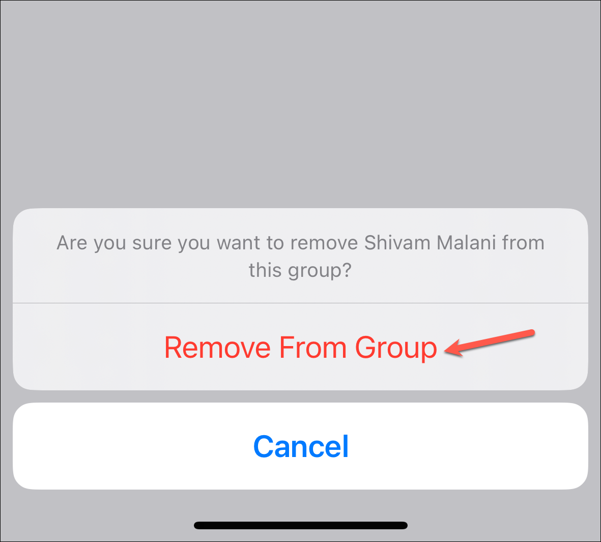 Tap 'Remove from Group' from the confirmation prompt.