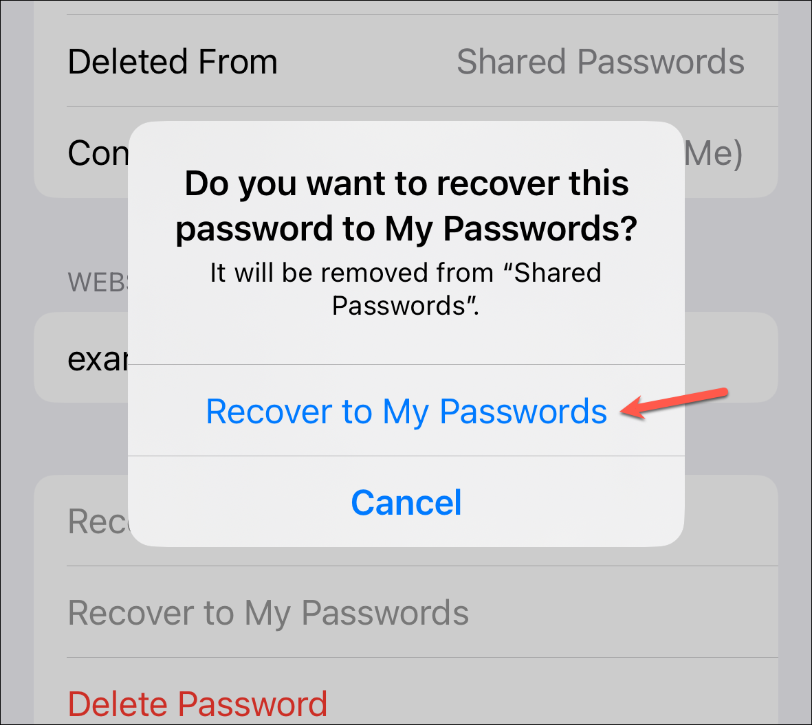 Then, tap 'Recover to My Passwords' on the confirmation prompt.