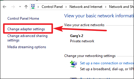 Now, click on Change Adapter Settings option on the left side of the screen.