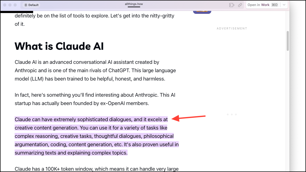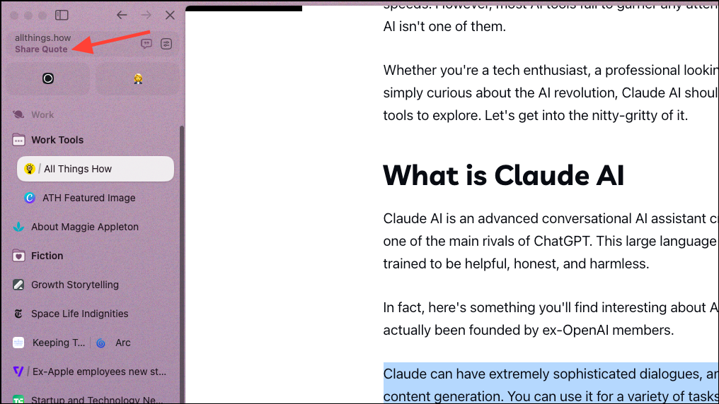 - To share quotes in Arc Browser, go to the webpage that has the content you want to share.