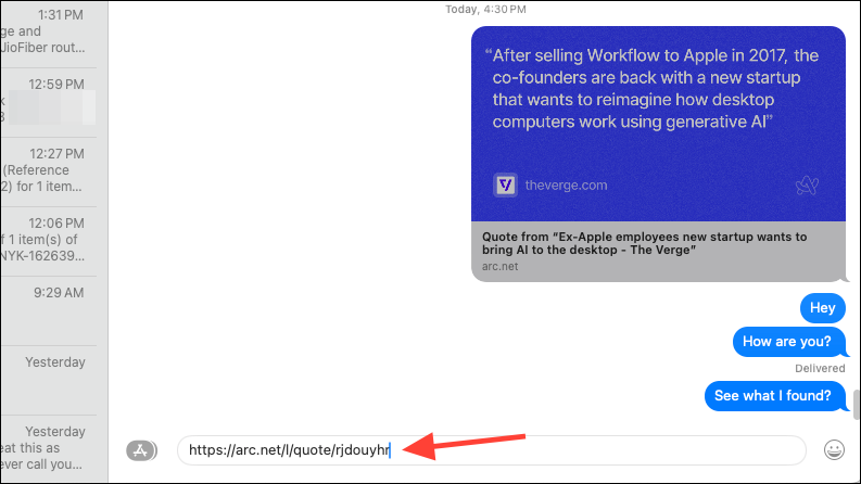 We're all sharing links with friends and family all the time. With the 'Share Quote' feature, you can share text from links, and Arc will share them in a beautiful format.