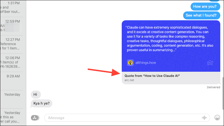 - Go to iMessage, open the chat of the person/ group where you want to share the link, and paste the link into the message box. It'll appear as a normal link. Click 'Enter' to send the message.