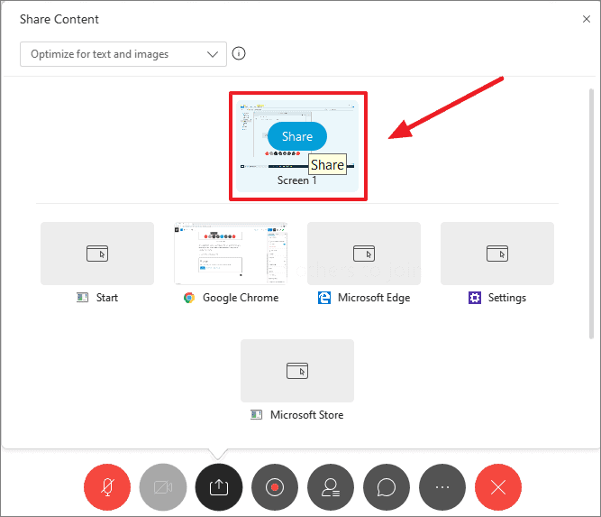 You can similarly choose to share other application windows as shown above. All applications running on your computer will show up in this section.