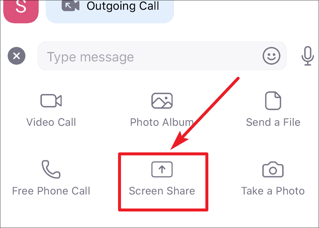 A few options will appear on your screen. Select ‘Screen Share’ from the menu.