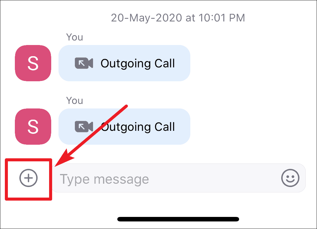 To start a screen share session from the chat, open the chat of the contact or channel you want to share the screen with and tap on the ‘+’ icon on the left of the message field.