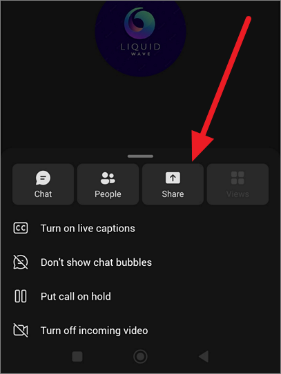 Next, click the ‘Share’ button in the call.
