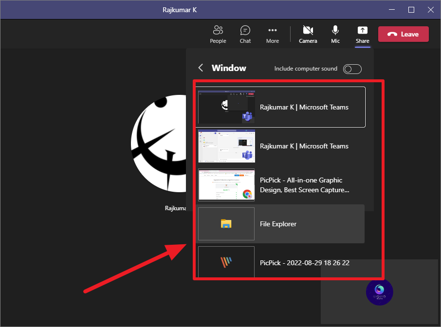 The selected window will be automatically shared with the people you are sharing. In case, you share the window or screen in a group meeting, your screen will be shared with all the attendees.