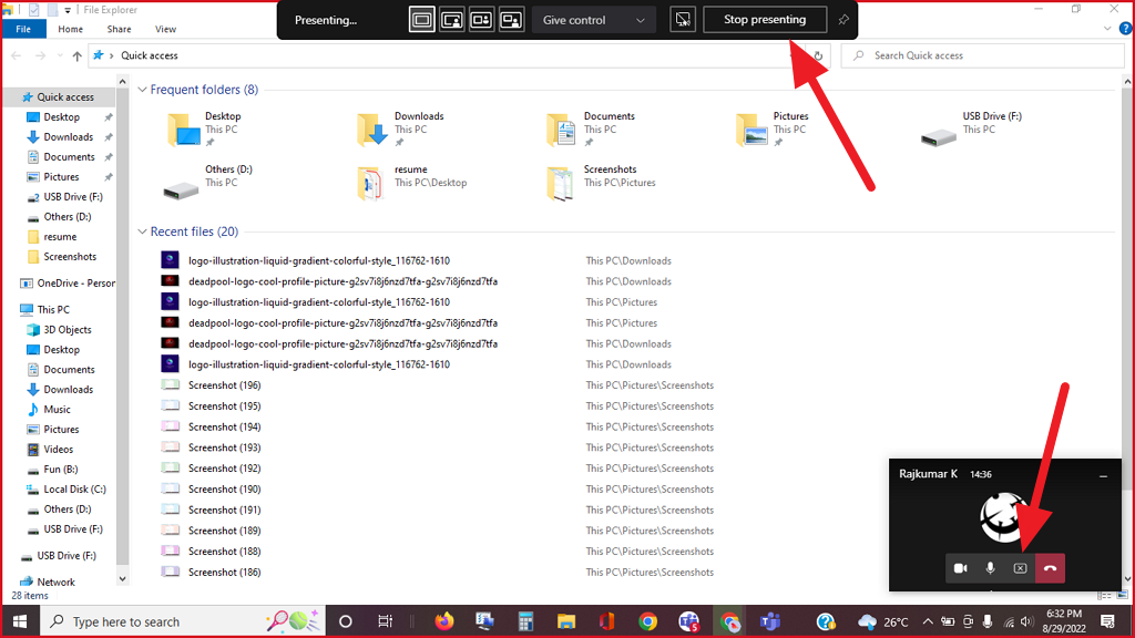 If you feel that minimized window is a distraction, click the ‘X’ button to close the minimized app. But your screen will still continue to share with the person or people on the other side.