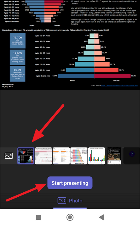 Next, select a photo from your gallery and click ‘Start presenting’ to stop photo sharing.