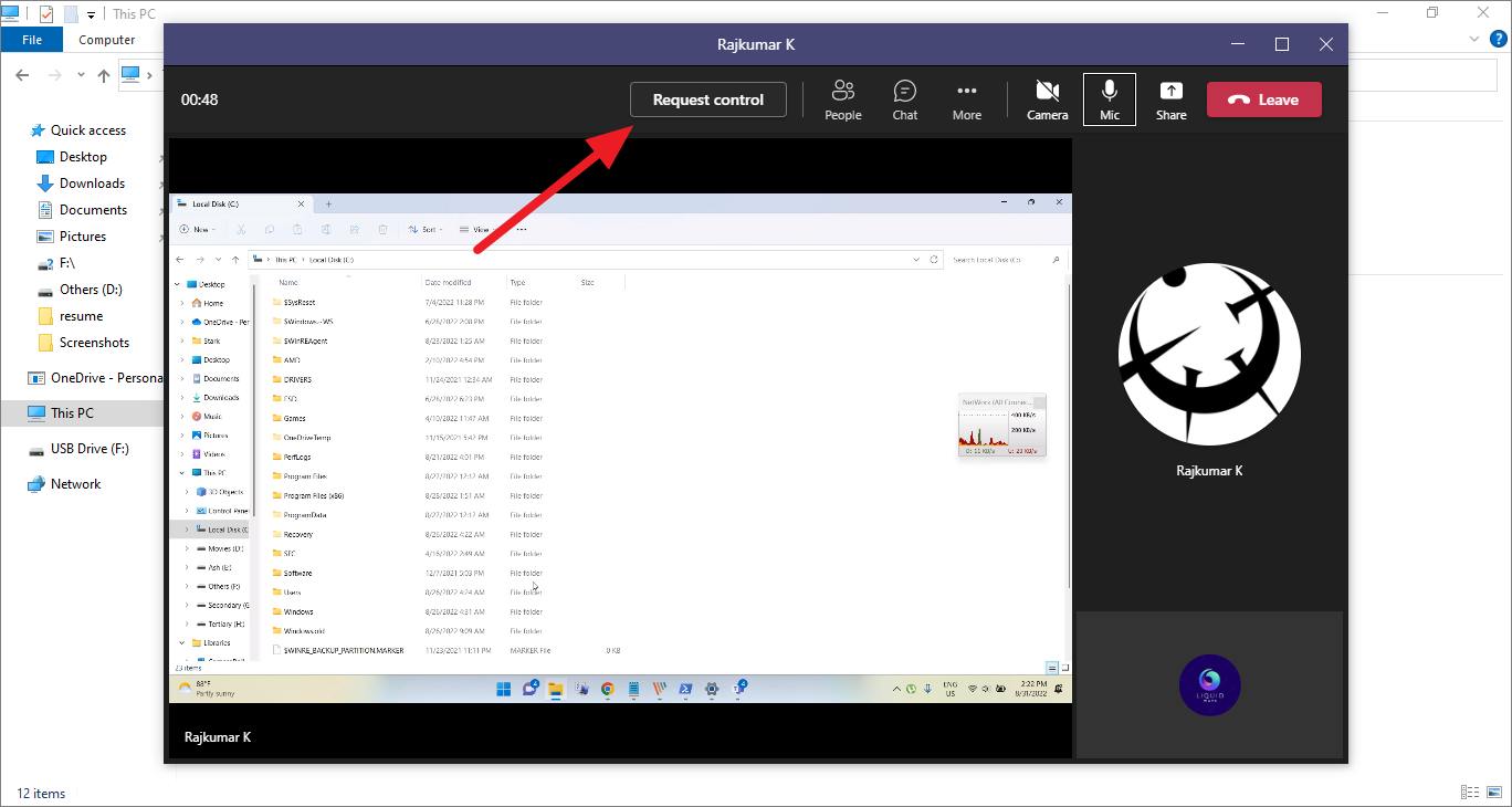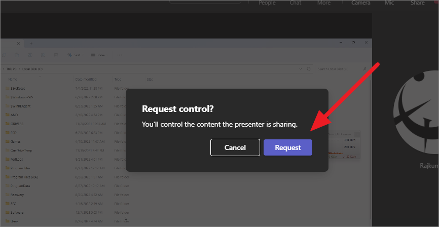 Microsoft also allows you to request control of the shared screen if another person is sharing their screen. Here’s how you can request control of someone else screen: