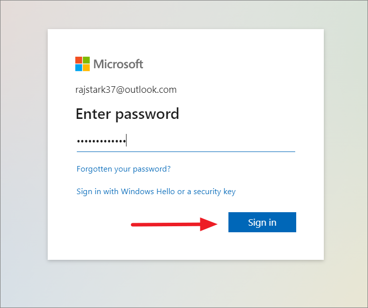 Then, enter your password again and click ‘Sign in’.