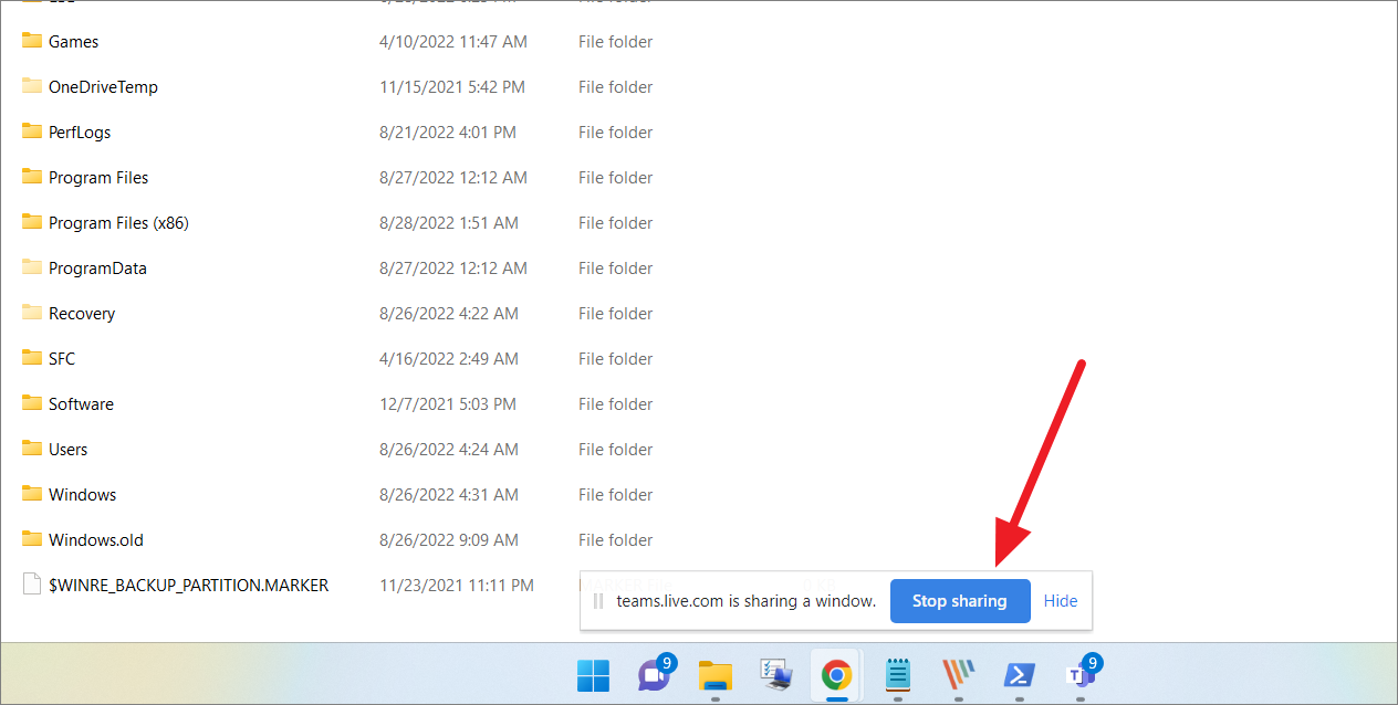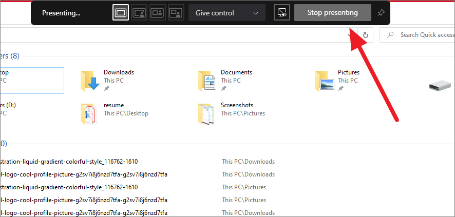 Then, click the ‘Stop sharing’ button at the bottom of the screen to end sharing content.