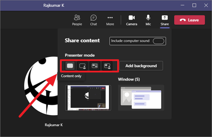 There are four presenter modes in Microsoft Teams: