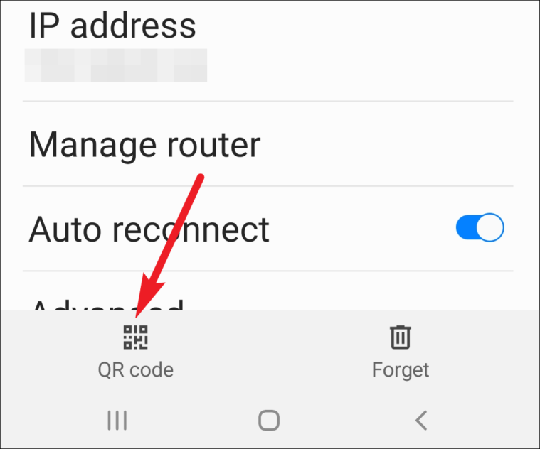 Network details will open. Tap the option for ‘QR Code’ (or on some Android devices, it might be ‘Share’, but the icon will always be a QR code) at the bottom of the screen.