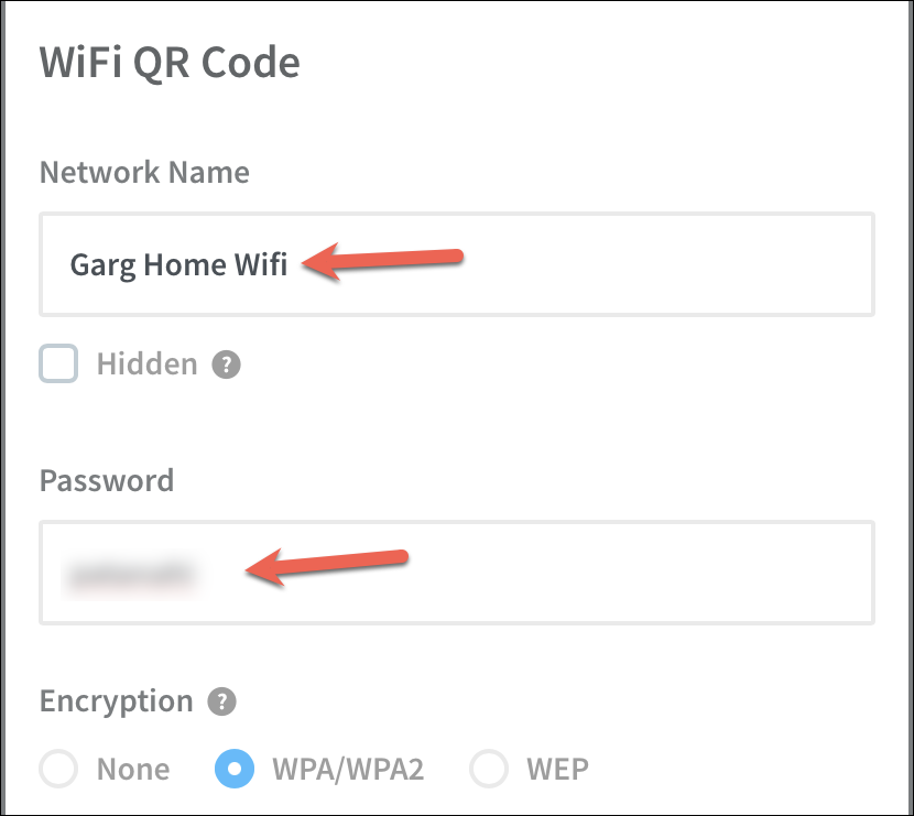 Enter the name of the network and the password in the respective fields. It’s the only drawback that you’ll have to enter the details manually to generate the code.