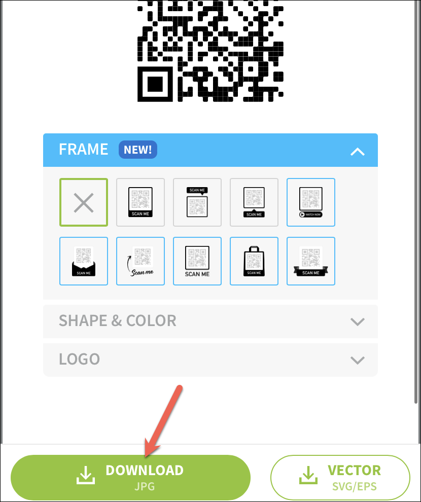 If you don’t mind signing up, tap the ‘Download’ button. Sign up and the image will be saved to your photos. Otherwise, you can also take a screenshot of the QR code and crop out everything else but the code from the screenshot.