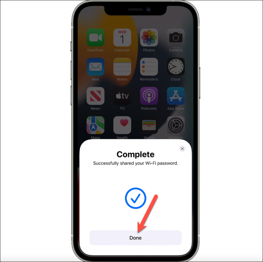 The password will be shared with the other device. Tap ‘Done’ to close the animation.