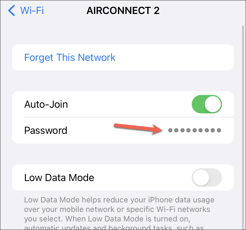 In both instances, you’ll reach the same screen with more information regarding the network. You’ll find the ‘Password’ field here but the actual password will be masked. Tap it once to reveal it.