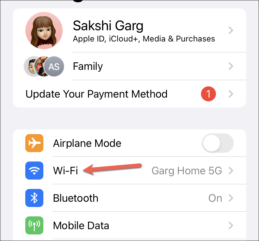 We’ll illustrate with the example of the iPhone. Open the Settings app and go to the option for ‘Wi-Fi’.