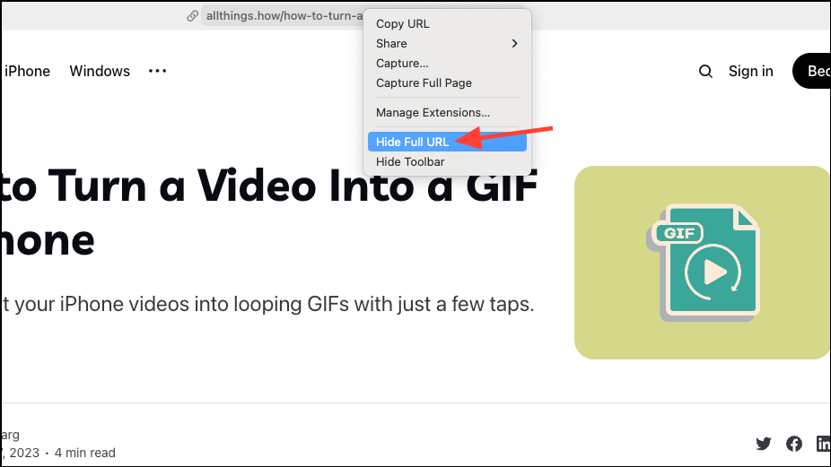 - The option to see the complete URL will still be enabled until you manually disable it. To go back, right-click on the address bar again and select 'Hide Full URL' from the context menu.