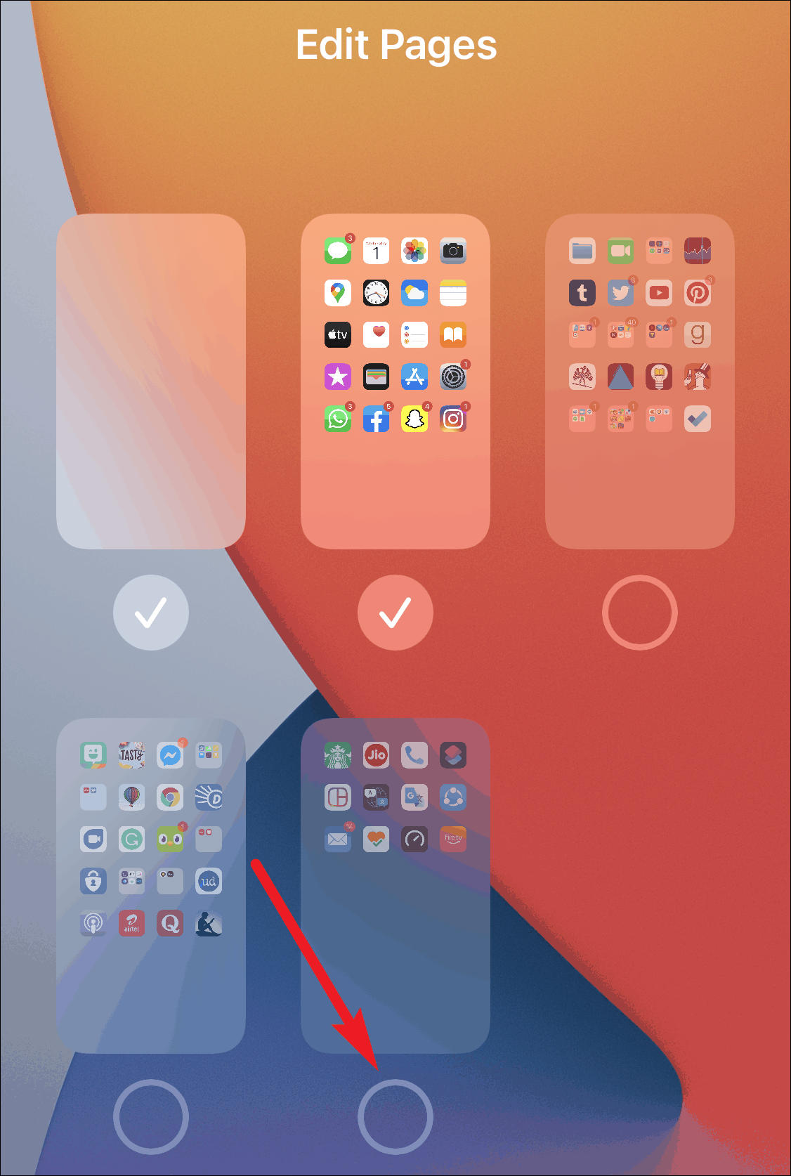 The ‘Edit Pages’ screen will appear. Tap on the checkmark to hide the pages and tap Done.