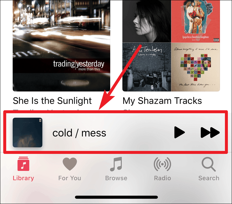 Open the Music app from the home screen of your iPhone. Then, go to the Now Playing screen by tapping on the Now Playing mini-player at the bottom of the screen. If you can’t find the player, play a song first.
