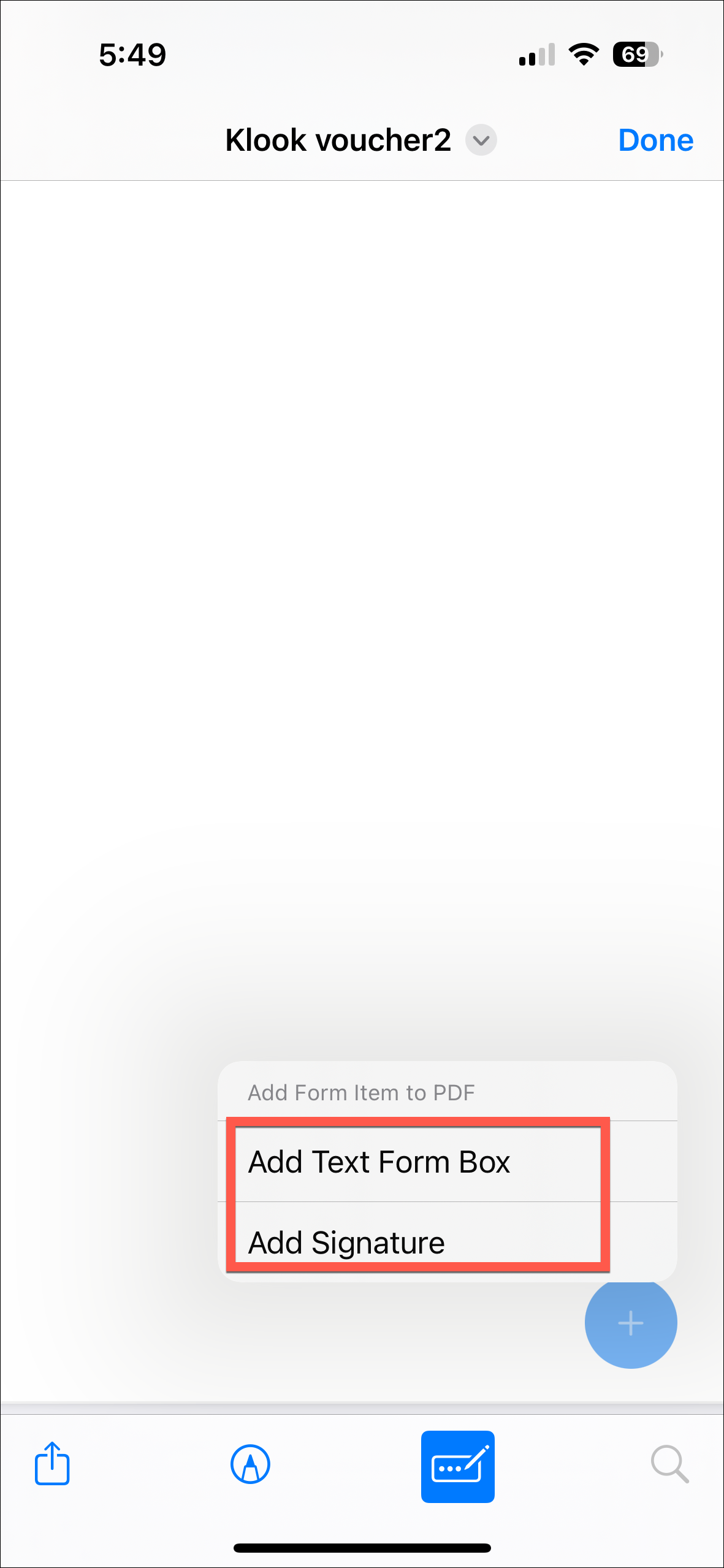 - Tap on it and you will get the option to 'Add Text Form Box' or 'Add Signature'. The text box option lets you add printed text, while the signature option allows adding handwritten signatures.
