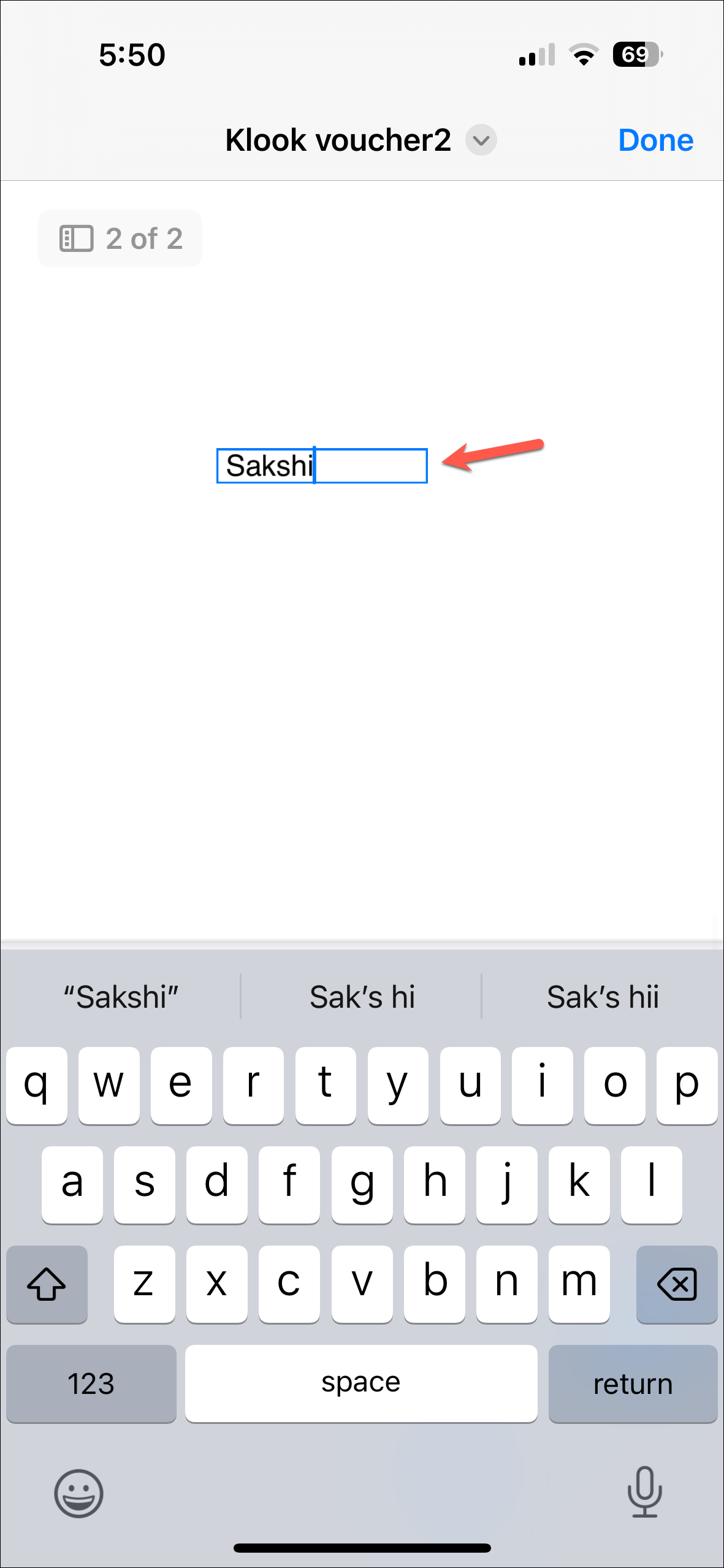 - If you add the text box, you can move and resize it by dragging it as required. Then tap inside the box to bring up the keyboard and type in your signature before tapping on the 'Done' button in the top-right.
