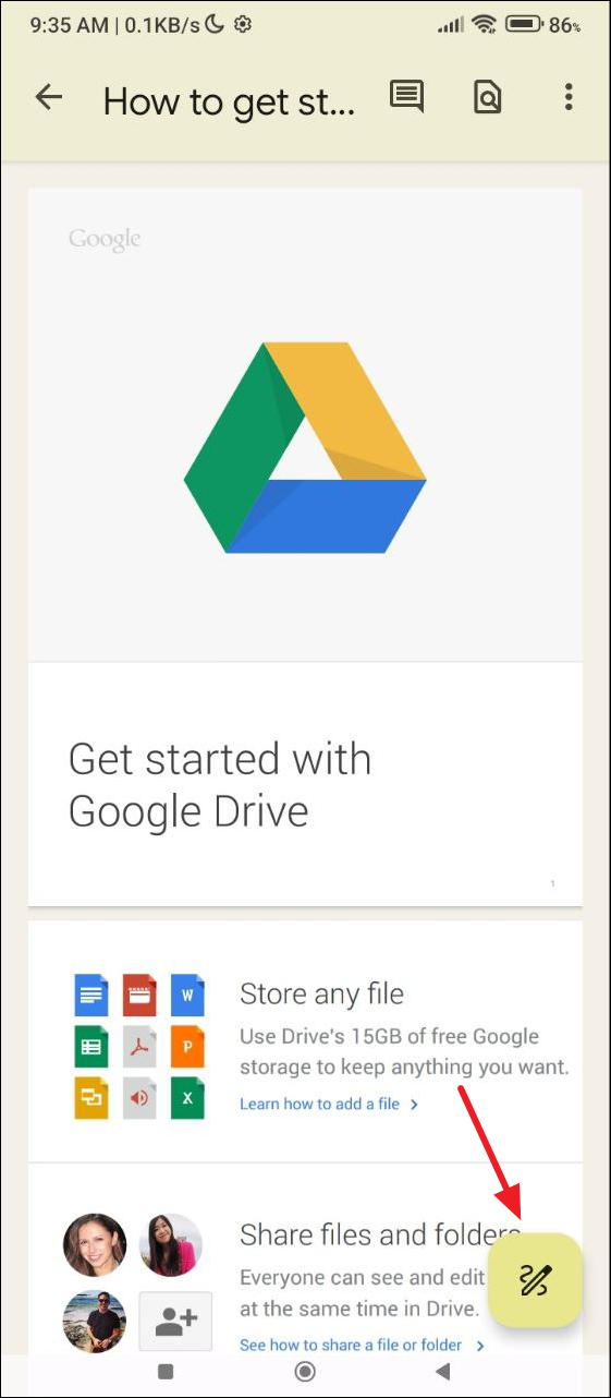 - The Edit and Annotate options in Google Drive appear for PDF documents on Android, but the Markup tool in iOS can be used on almost any type of document, not just PDFs.