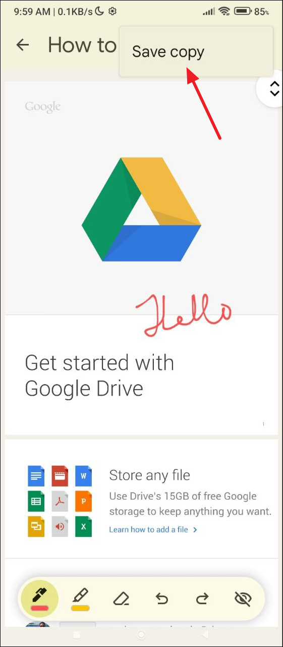 - On the other hand, if you want to save an edited copy of the document while retaining the original one, tap on the three dots on the top right and then on the 'Save copy' option.