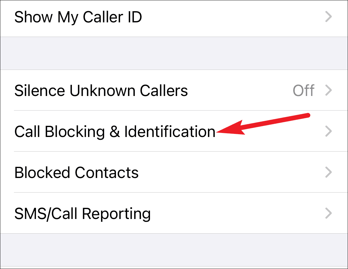 Then, scroll down and tap on ‘Call Blocking & Identification’.