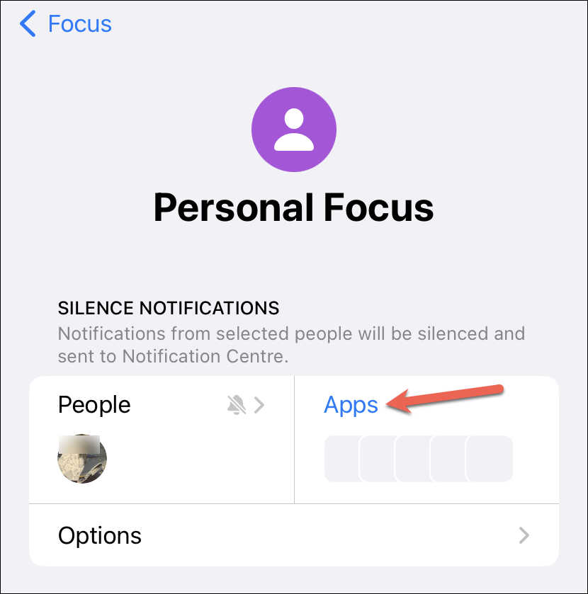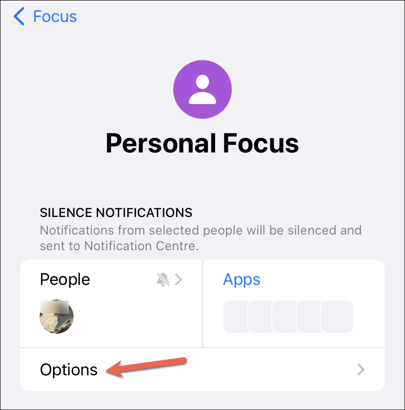 You can also customize the Focus a little further. Tap ‘Options’ under the People & Apps section to do that.