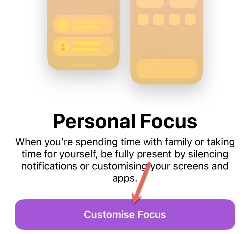 If you too are setting a new Focus, the onboarding screen for the same will appear. Tap ‘Customise Focus’ to proceed. The screen for customizing the Focus will open.