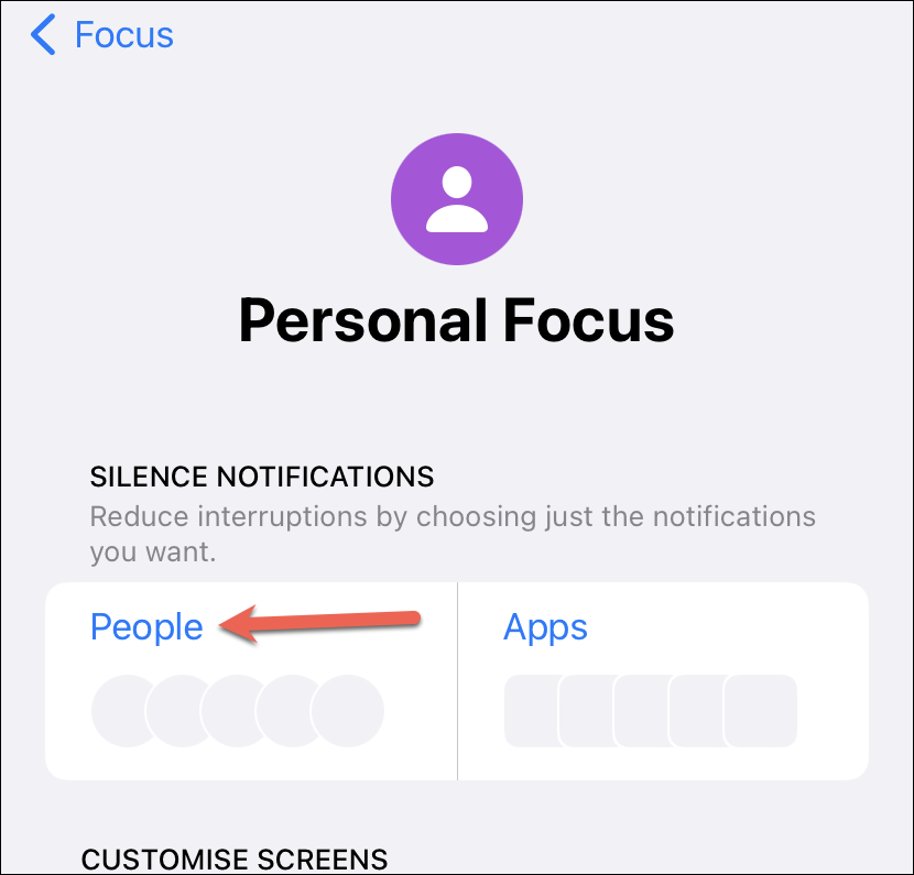 To silence notifications from specific people, tap the ‘People’ option under the ‘Silence Notifications’ section.