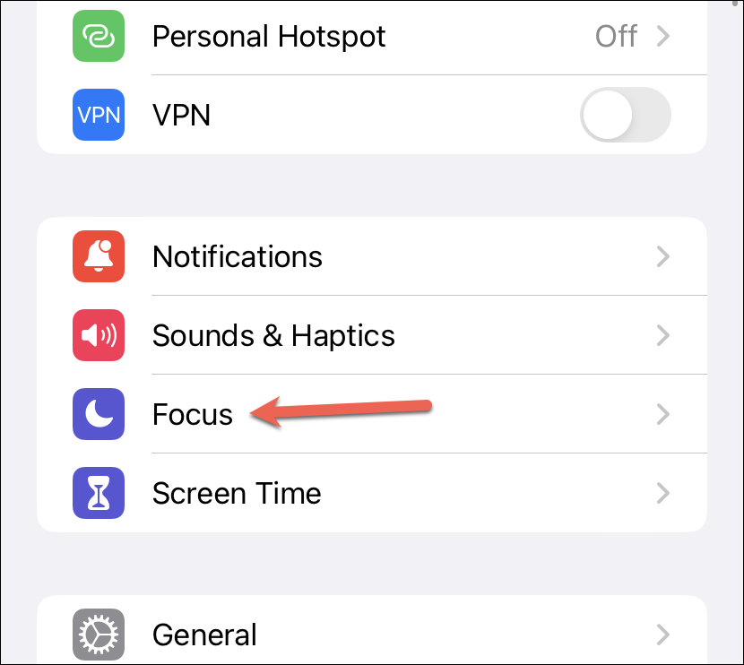 Open the Settings app and tap the option for ‘Focus’.